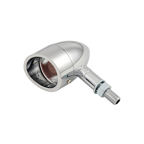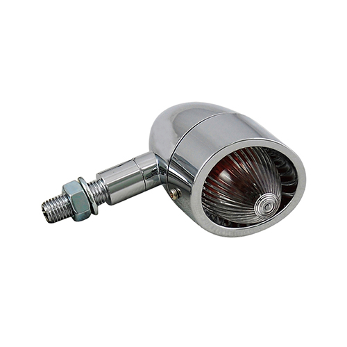 - Cool 60s look in a retro visor housing that comes with a retro style clear or Flat style clear lens. Die-cast aluminum housing in CHROME or matte black finish. Light body measures 41mm in diameter with a 83mm long body, M10-1.25 mounting bolt or stud mount. Includes single-filament 12V bulb. Sold in pairs.